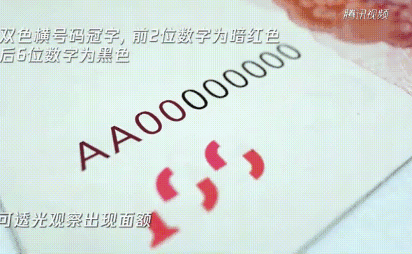 雙色橫號碼冠字,前2位數(shù)字為暗紅色
