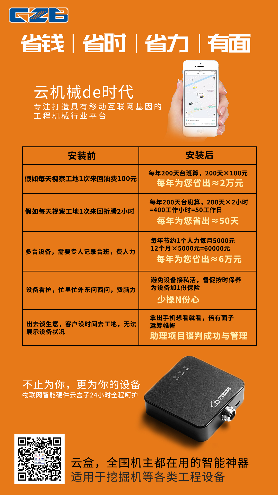 安裝后,一個人、一個云機械云盒就是一個隊伍!拿出手機想看就看,運籌帷幄;省時、省事、省力,解決臨時困難不求人,有面子!
